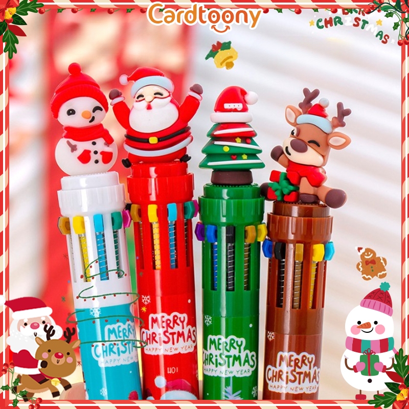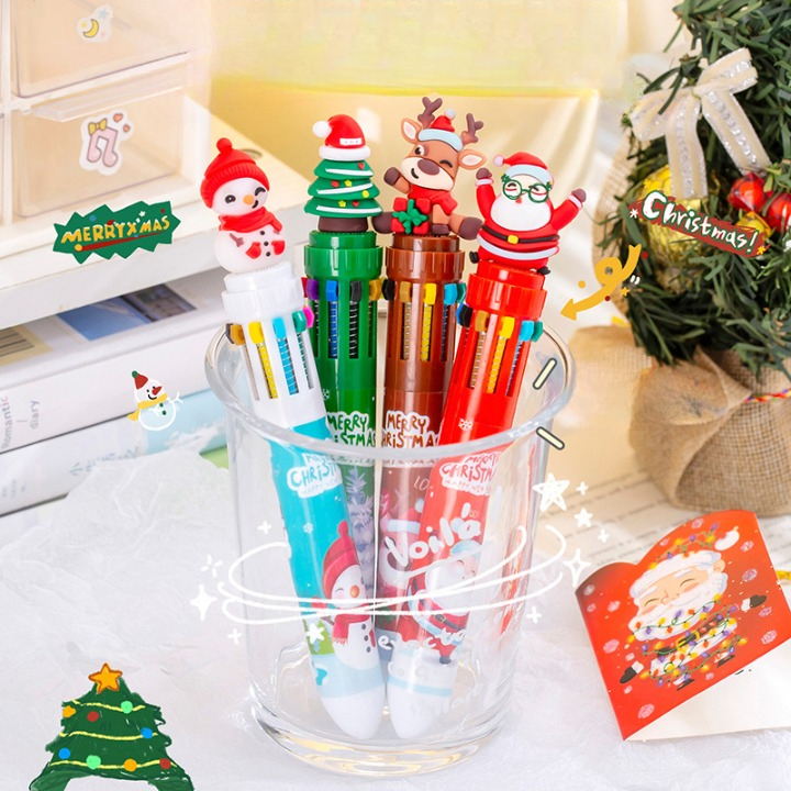 Pulpen Natal 10 Warna Lucu Santa Claus Pohon Snowman Rusa Ballpoint Christmas Bolpoin Bolpen Xmas Cute Lucu Imut Kado Hadiah
