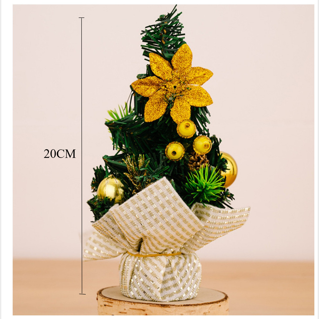 ACC193 Pohon Natal Mini 20cm Cemara PVC Full Aksesoris Bola Pita Bunga Hiasan Meja Dekorasi Ran Merry Christmas