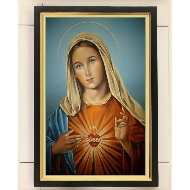 hiasan dinding lukisan cetak bunda maria couple plus bingkai ukuran 65×45
