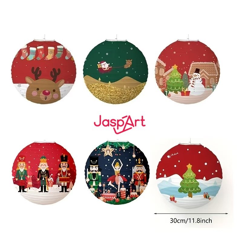 Lampion Natal 12 Inch 30Cm Hiasan Natal Dekorasi Natal Lentera Natal Garland Tarik Natal 3 Meter