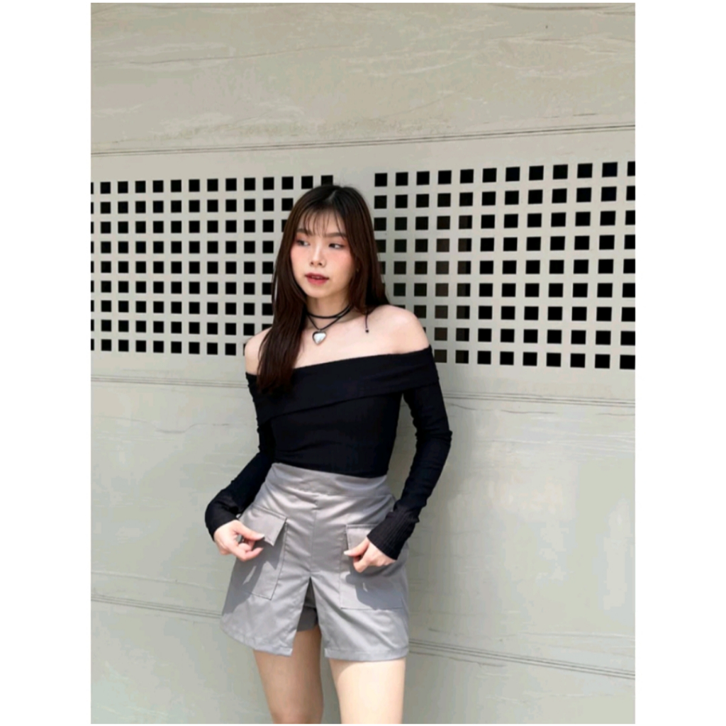 Sabrina Rib Top | Baju Atasan Wanita Terbaru Crop Top Lengan Panjang - Baju Wanita Kekinian - Outfit Wanita Kekinian - B