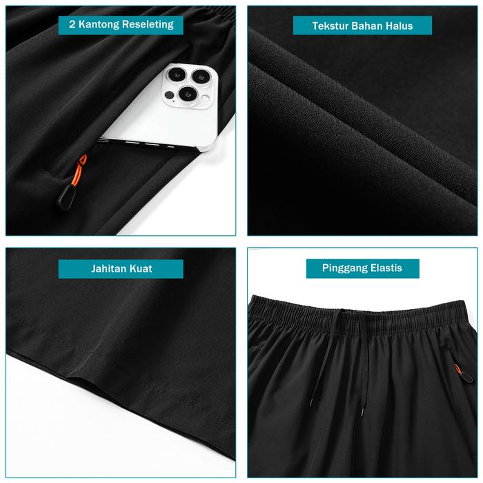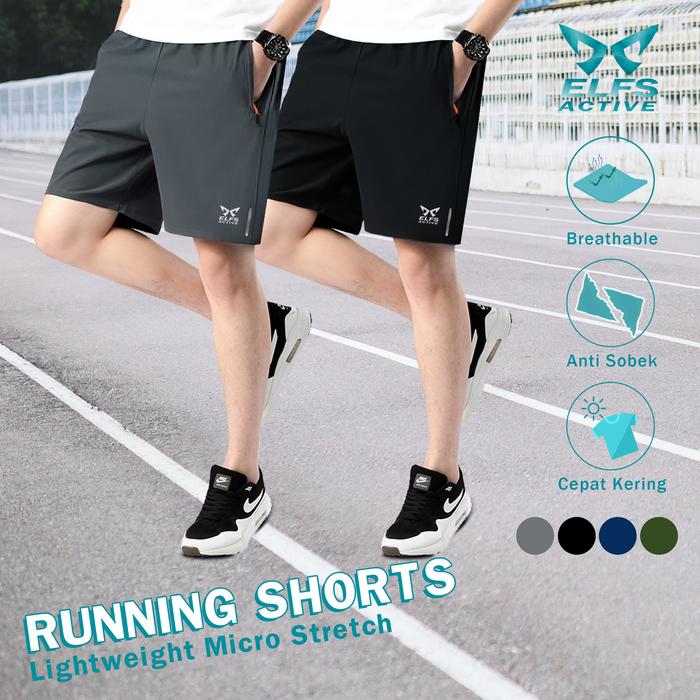 ELFS ACTIVE RUNNING SHORTS - CELANA PENDEK RINGAN LARI JOGGING MARATHON OLAHRAGA PARASUT - ABU TUA, M