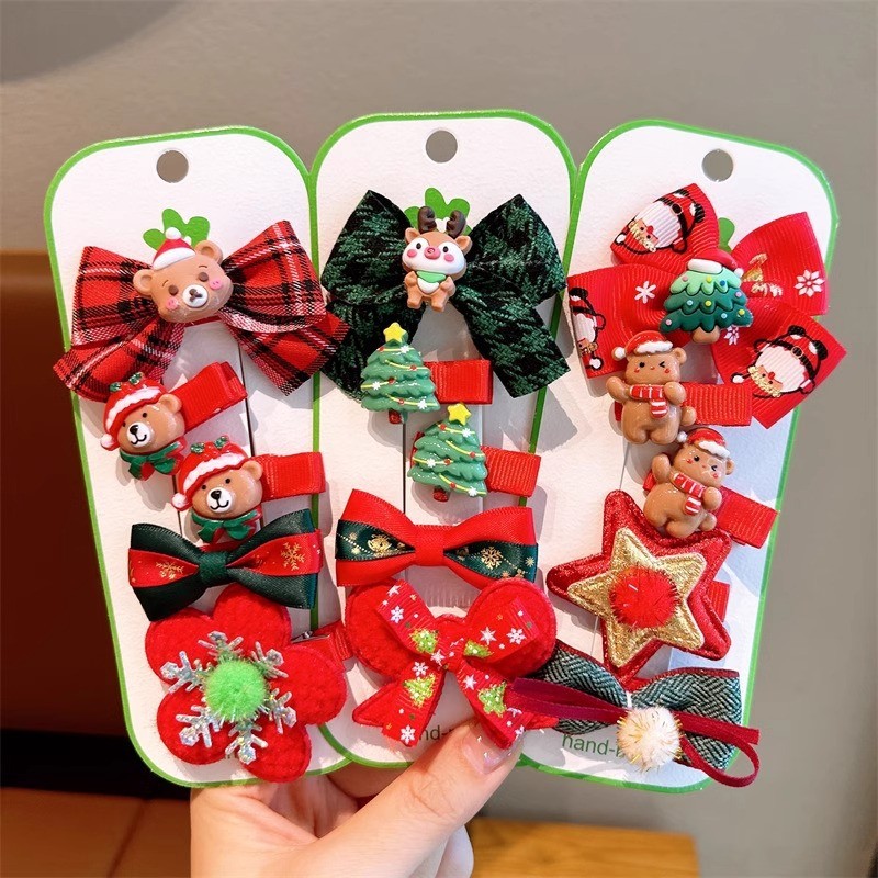 5in1 Set Jepit Rambut Natal Anak – Motif Christmas Lucu & Meriah