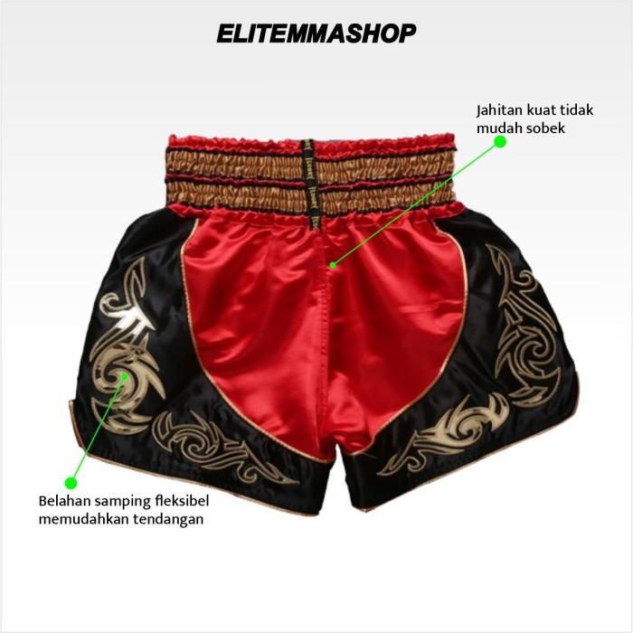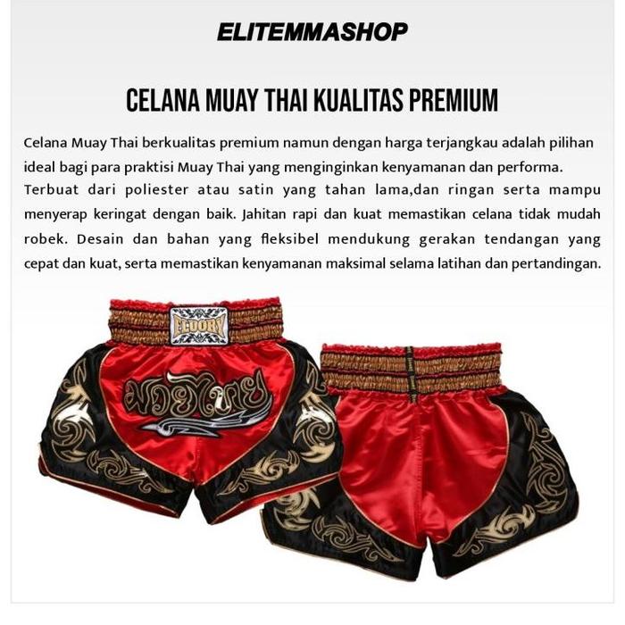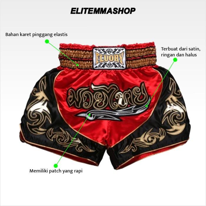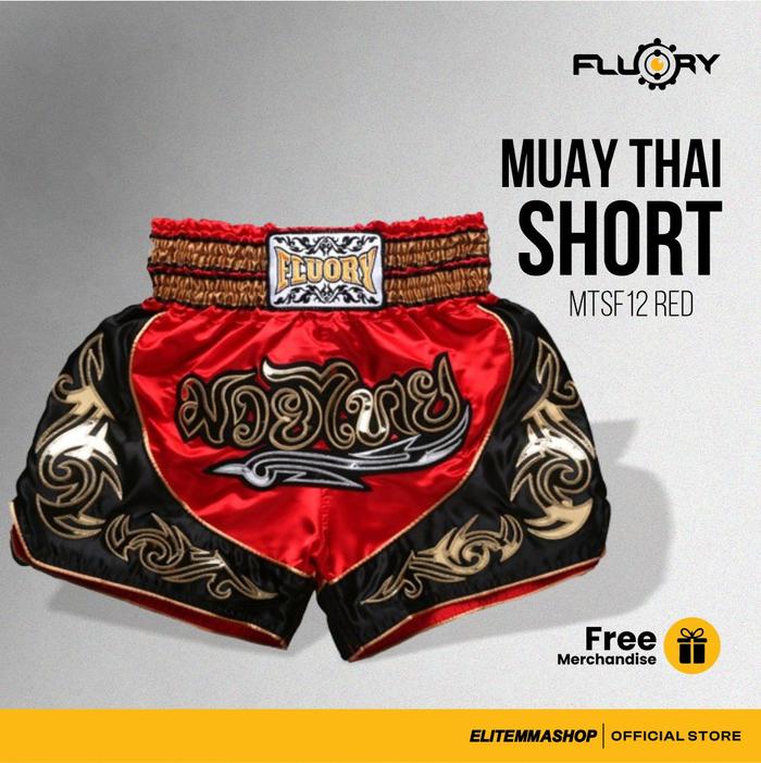 CELANA FLUORY MUAY THAI SHORT MTSF12 RED CELANA BOXING MUAYTHAI TINJU - XS