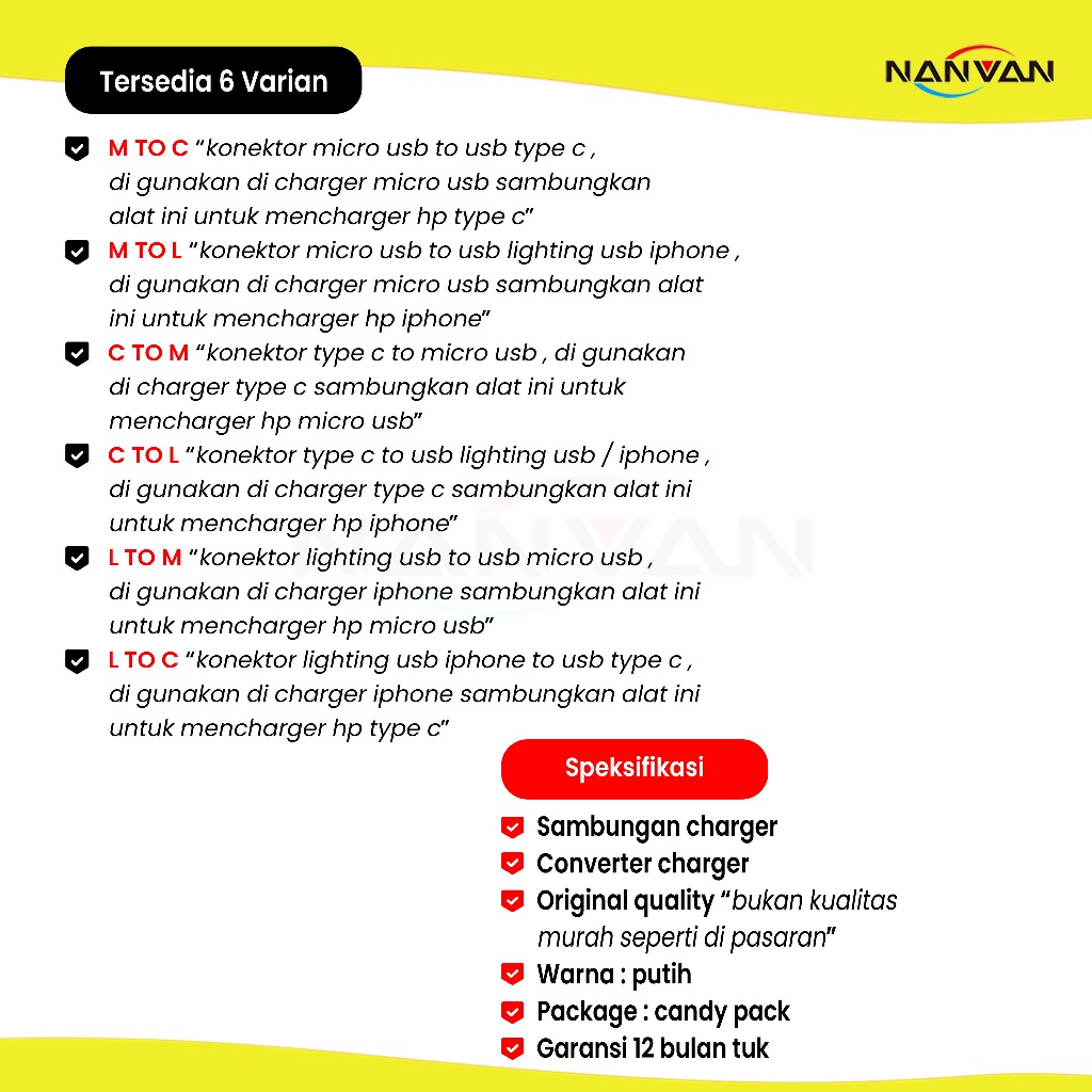 Nanvan Nvn-C1 Sambungan Konektor Converter Charger For Usb-C/Micro/Iphone Premium