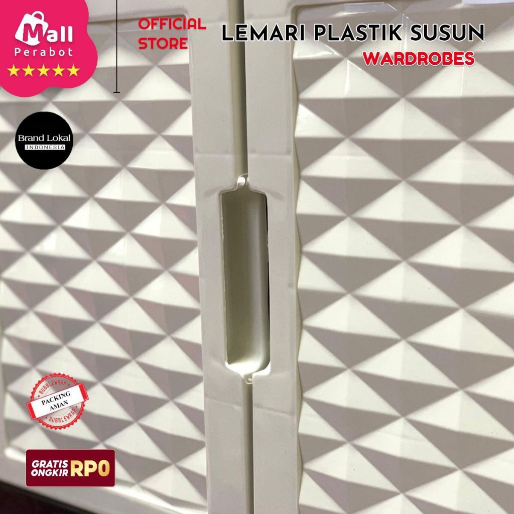 Mall Perabot | Lemari Pakaian Susun Wardrobe Diamond Plastik Persegi | Rak Baju Tingkat Jumbo Pintu Serbaguna Murah