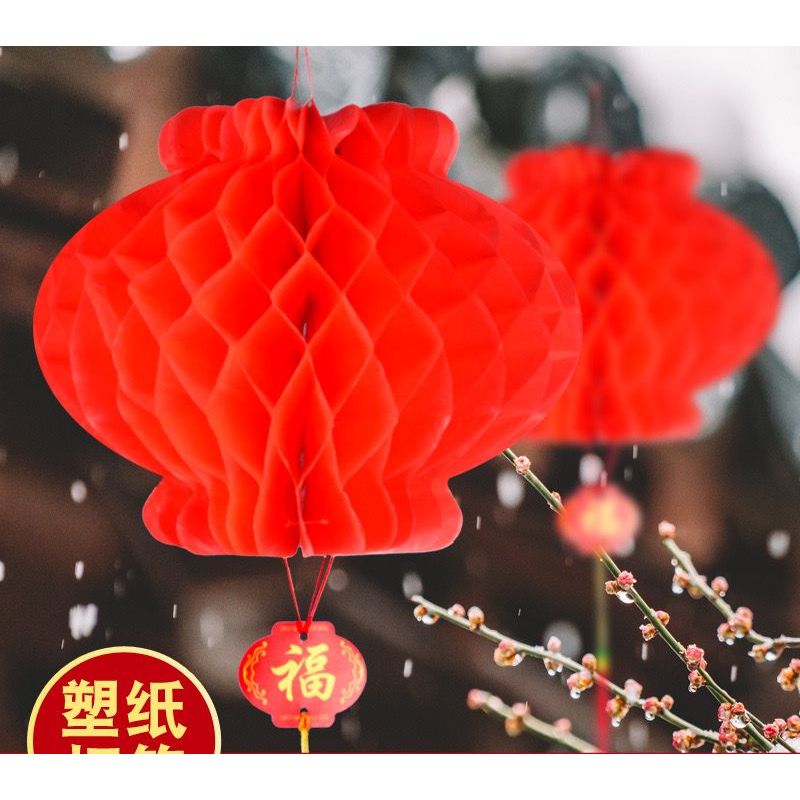 1Buah DIY Lampion door Plastik | Lampion Gantung Plastik Bulat Honeycomb Merah Dekorasi Imlek