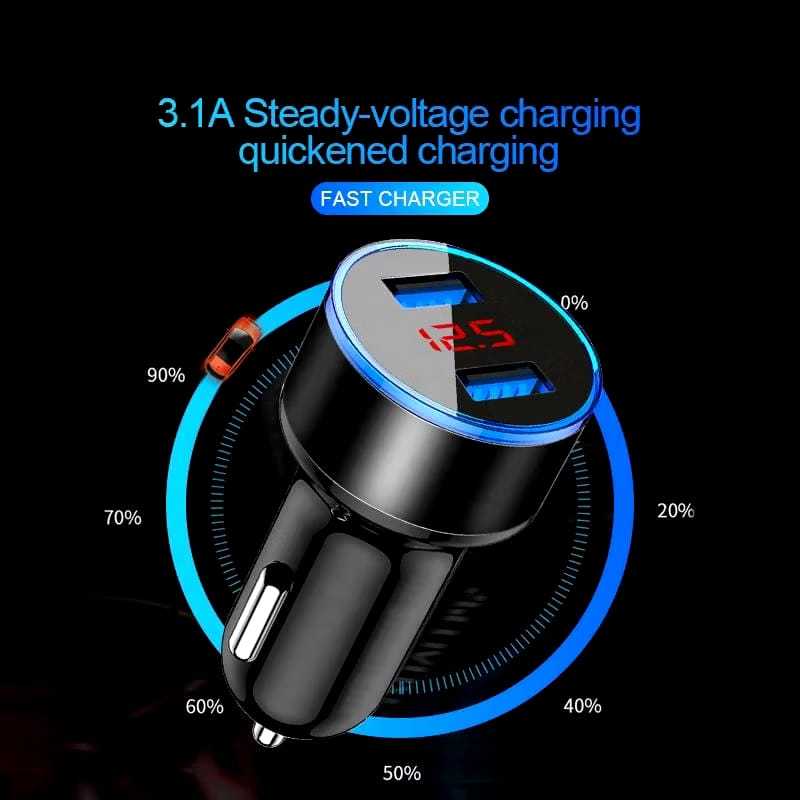 Mouseman - Charger Mobil Charger Motor Pengisi Daya Dual Ports 3.1A 12V-24V With Digital LED