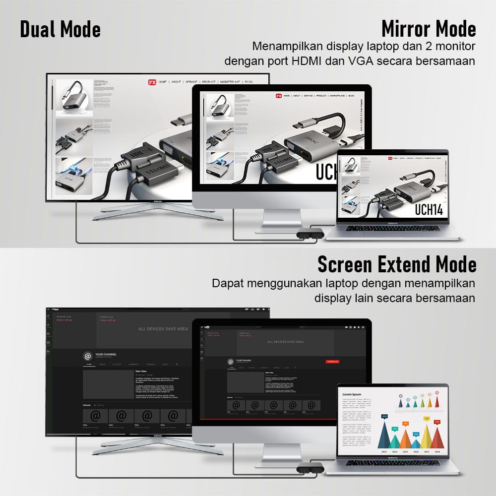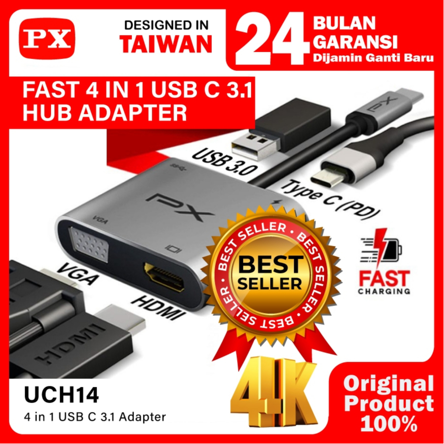 Type C 3.1 To Hdmi Vga Usb Hub Converter Adaptor 4 In 1 4K Px Uch14