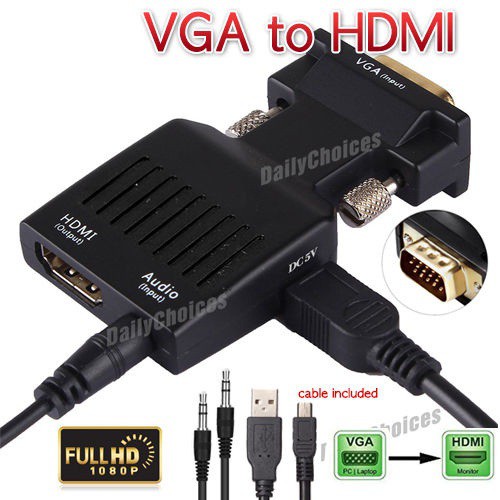 Sku-1001 Converter Vga To Hdmi With Audio Adapter Dongle / Cpu Pc Vga Ke Tv Hdtv / Komputer Ke Tv Hdmi