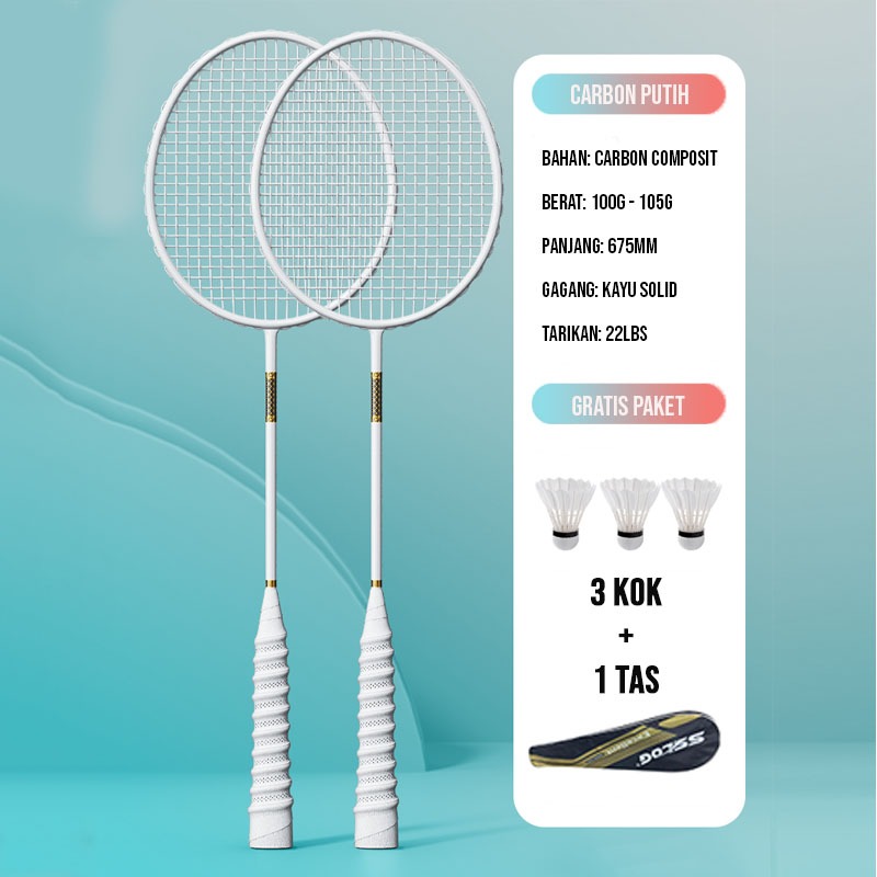 BBAK 2 PCS Raket BuluTangkis Raket Badminton Bahan Full Carbon GRATIS TAS PAKET 3 KOK