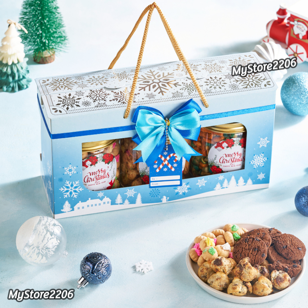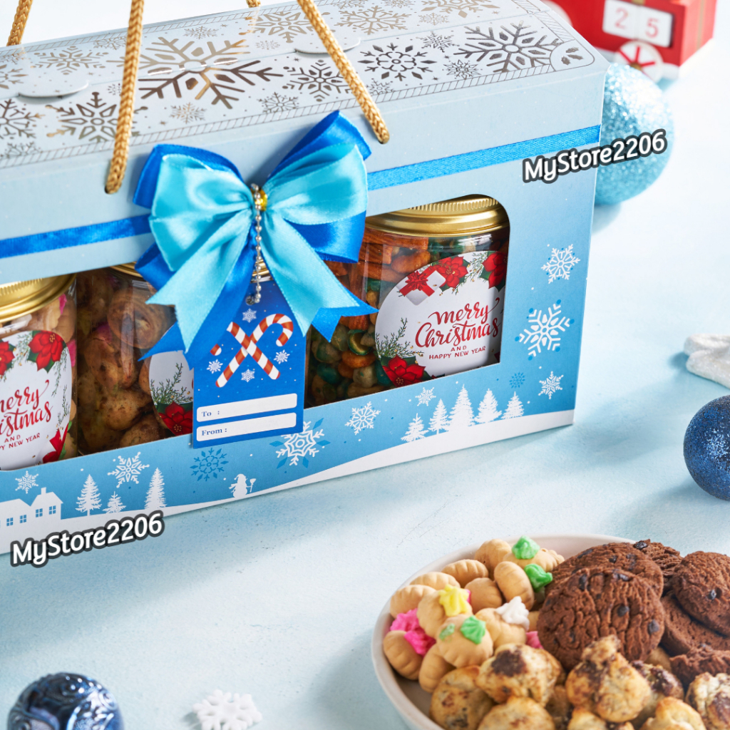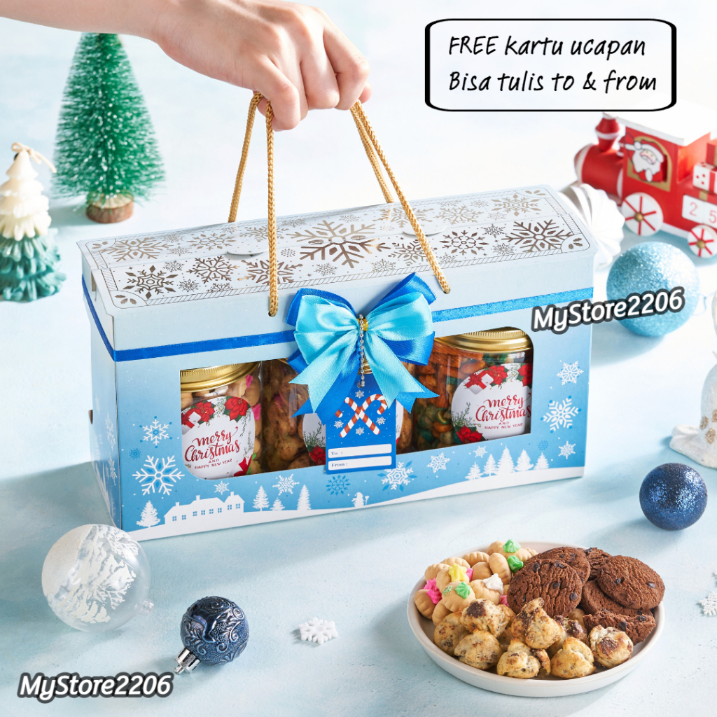 Hampers Parcel Natal 2024 Cookies Kue Kering Choco Chips, Gem Rose, Soes Chocolate 3 Jar 600ml / Hampers Merry Christmas