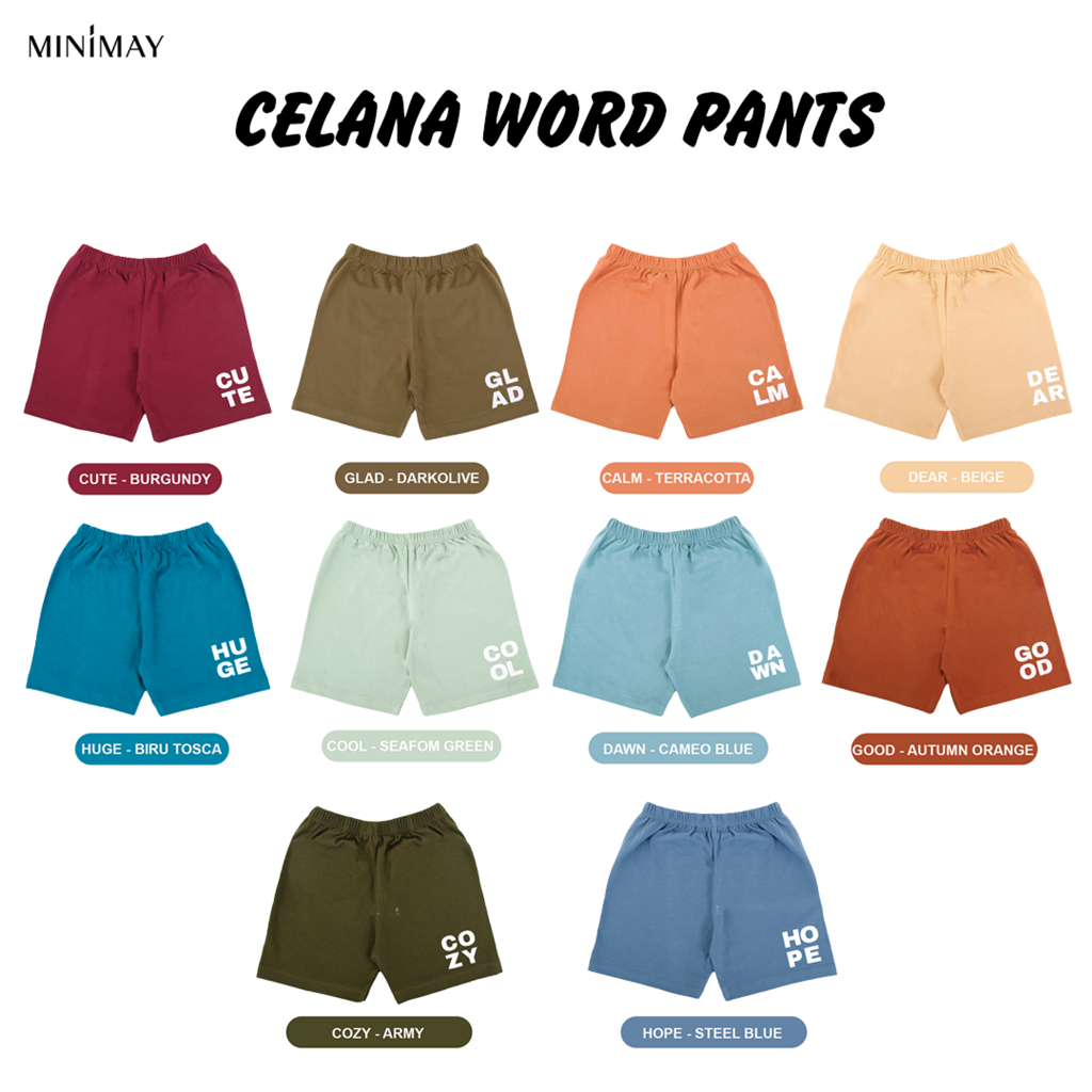 MINIMAY Celana Pendek Anak Kolor Word Pants Laki-Laki Perempuan 12345 Tahun Maysara