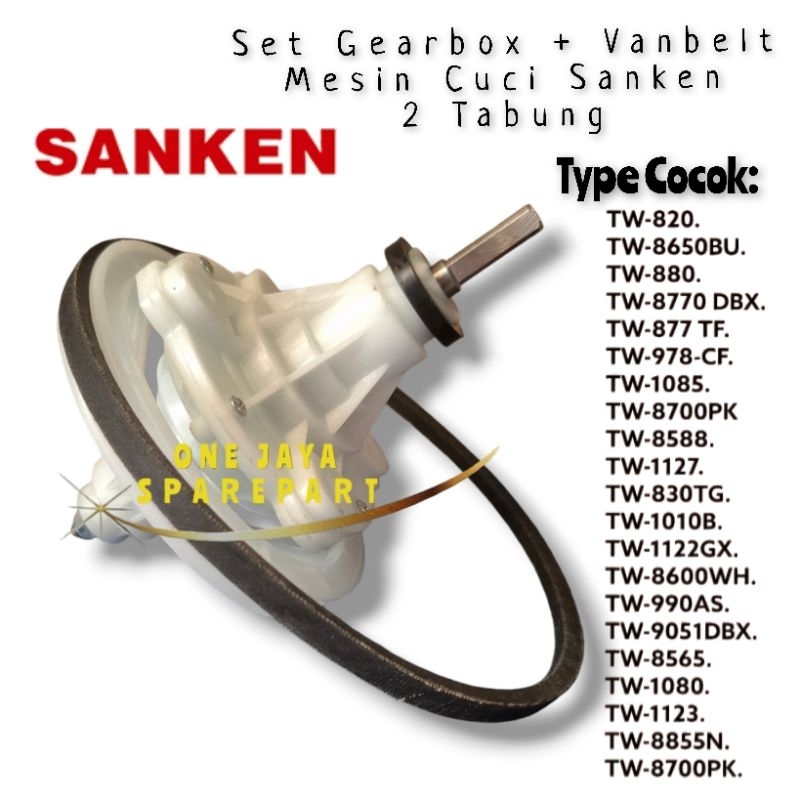 Set Gearbox Sanken + Vanbelt Mesin Cuci 2 Tabung As Kotak Seri Type TW-820 / TW-8560BU / TW-880 / TW-877TF / TW-1122GX