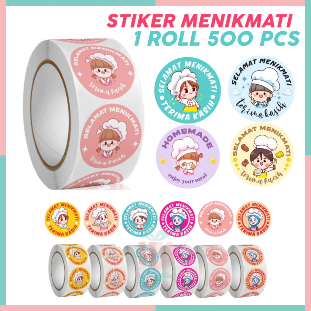 500 Pcs Stiker Selamat Menikmati Sticker Bulat Roll Makanan Kue Thank You Terima Kasih ST001