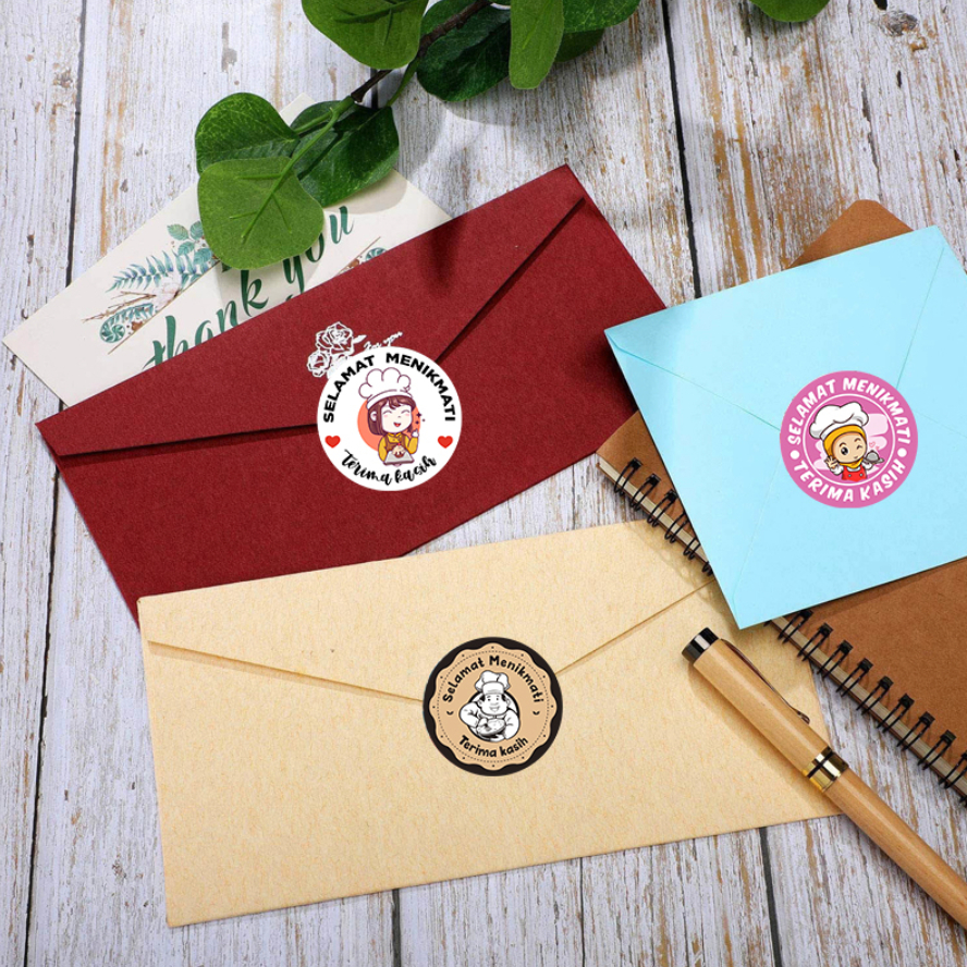 500 Pcs Stiker Selamat Menikmati Sticker Bulat Roll Makanan Kue Thank You Terima Kasih ST001