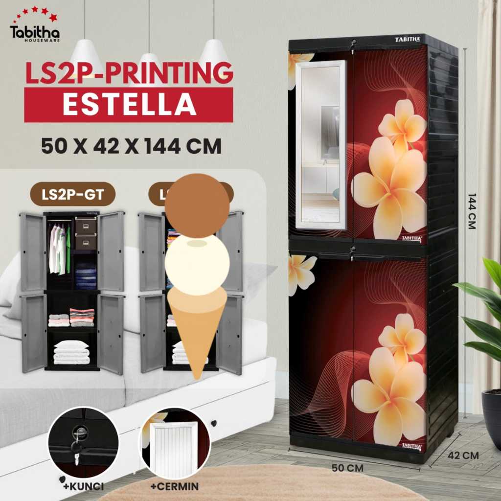 LEMARI PAKAIAN PLASTIK TABITHA DENGAN CERMIN KARAKTER FULL KUNCI