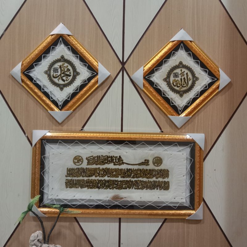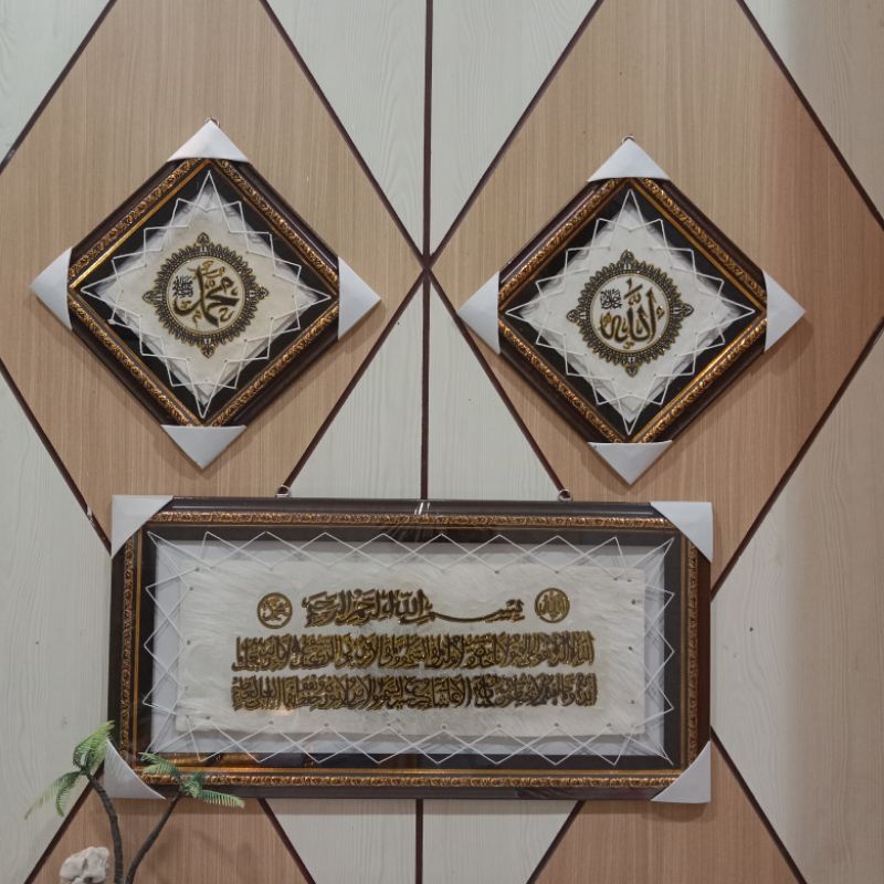 Kaligrafi 3in1 Kaligrafi Allah Muhammad & Ayat Kursi Kaligrafi Kulit Kambing