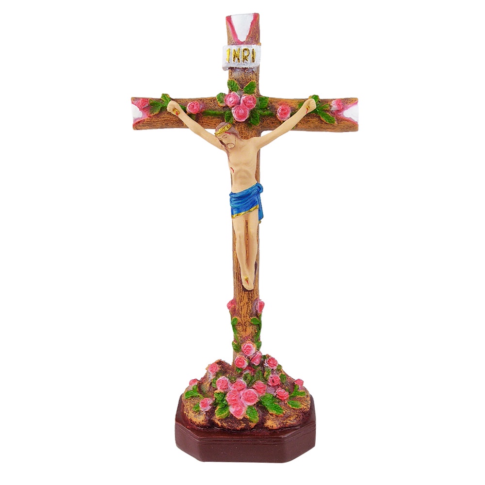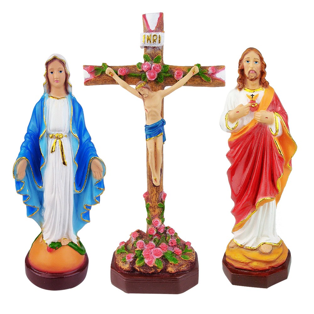 Set Patung Doa Lingkungan Maria Yesus 20 cm Salib Mawar Duduk