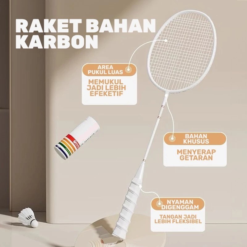 BBAK 2 PCS Raket BuluTangkis Raket Badminton Bahan Full Carbon GRATIS TAS PAKET 3 KOK