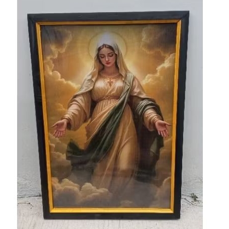 hiasan dinding plus bingkai bunda maria diatas awan ukuran 65x45cm