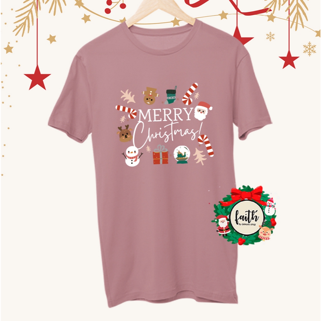 KAOS NATAL 2025 TERBARU BAJU NATAL KELUARGA KAOS NATAL PRIA WANITA ANAK KAOS CHRISTMAS SANTA KLAUS REINDEER SNOWMAN FAITH BY DEKAOS 3190