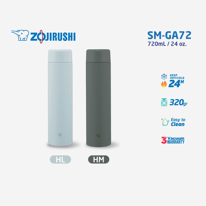 Zojirushi SM-GA72 HL Vacuum Mug Botol Minum Tumbler - 720mL [Ice Gray]