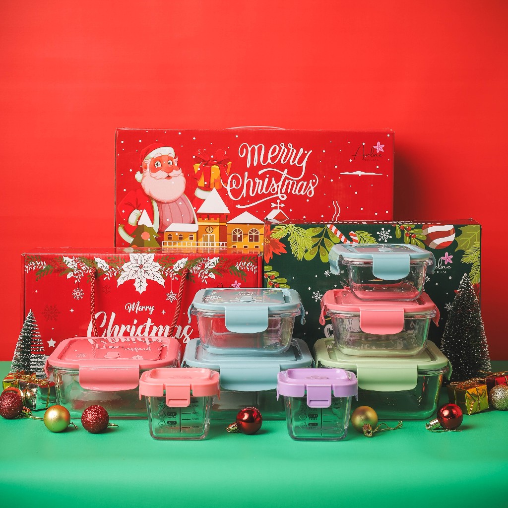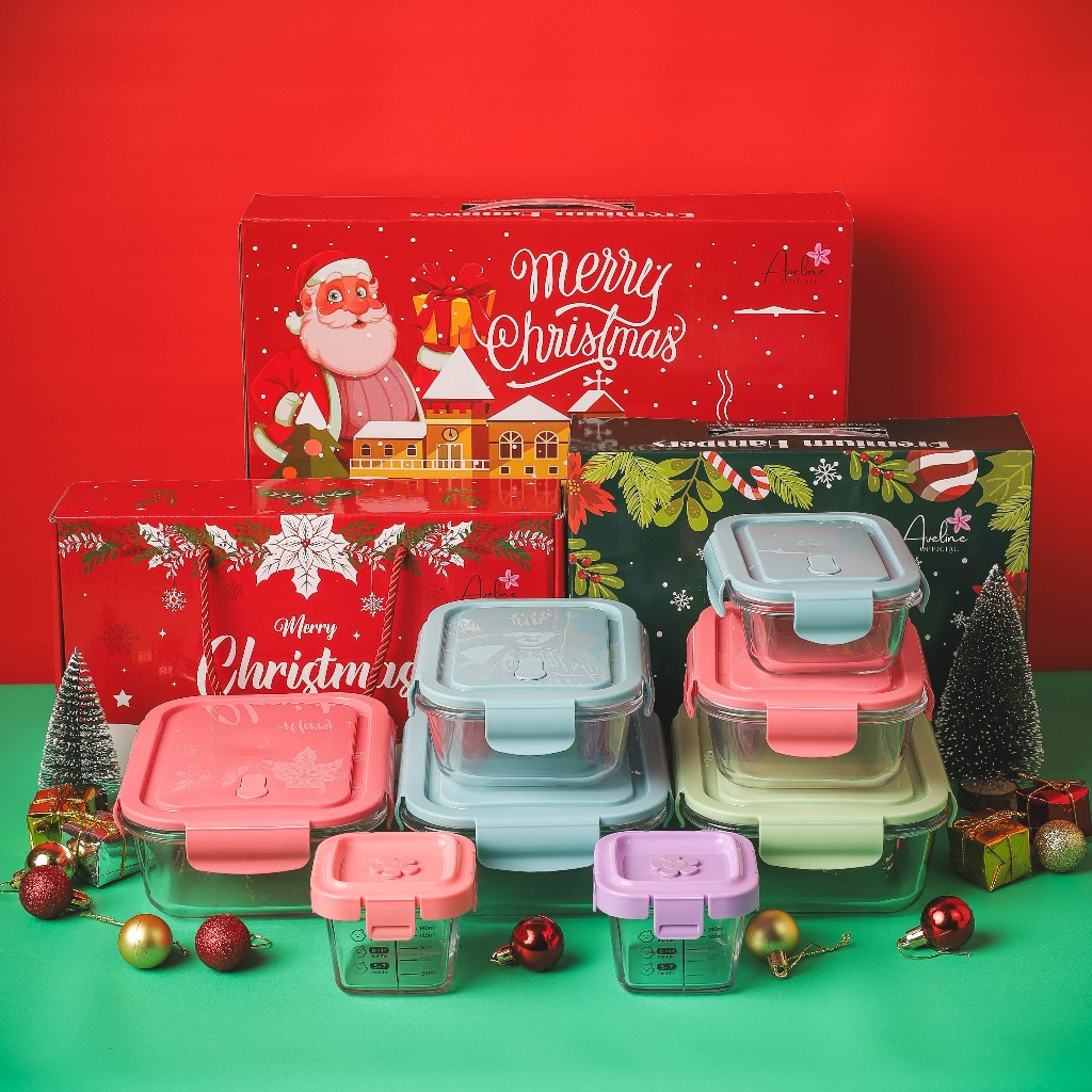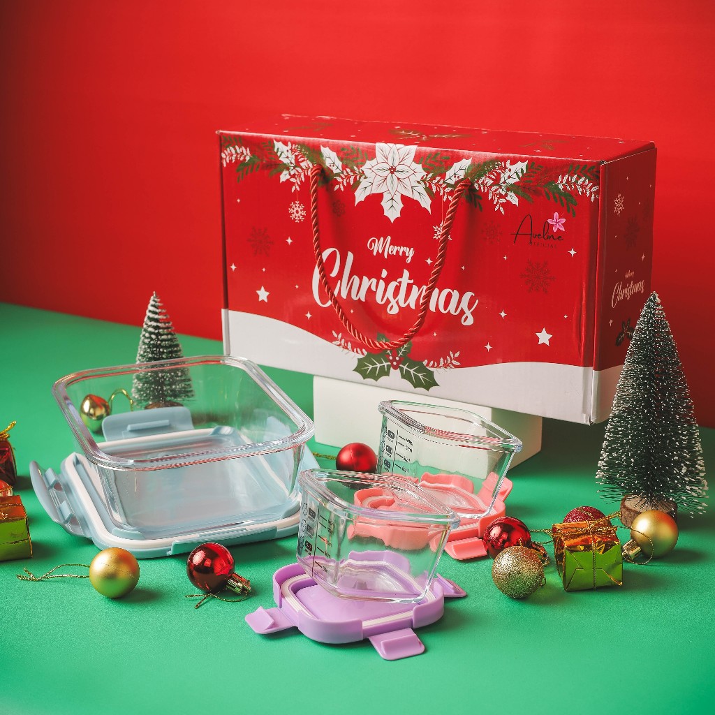 Clotee Hampers Xmas Lunch Box dan Mpasi Set 3in1 / Christmas Gift Set Mpasi Kedap Udara / Kado Natal Akhir Tahun / Hampers Christmas Exclusive Lunchbox Kaca 3IN1 & 2IN1 Lunch Box Kaca Kedap Udara