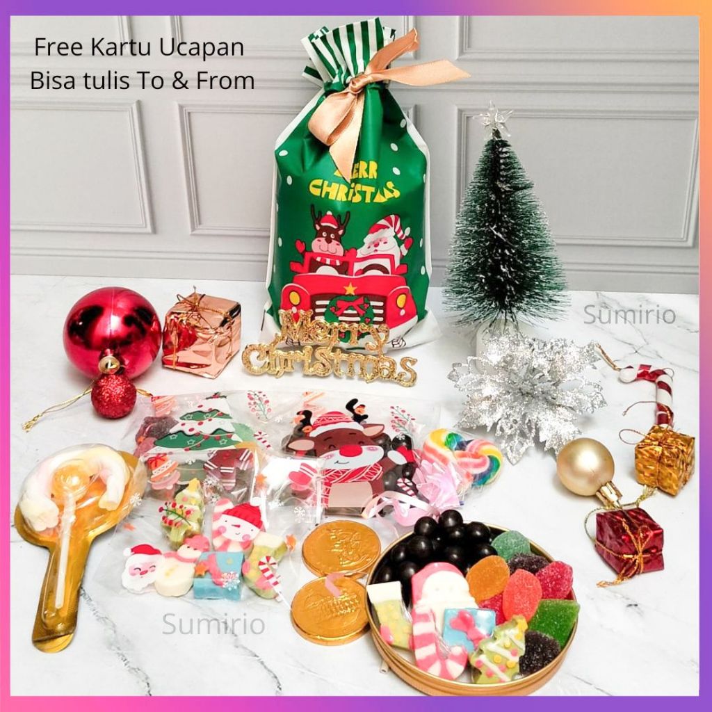 Parcel/Hampers/Bingkisan/Mini Bag Natal/Christmas isi Permen Mashmallow, Permen Lolipop, Coklat Natal, Coklat Koin kuningan mengkilap,Permen Jelly