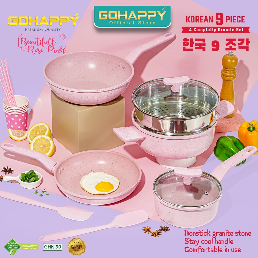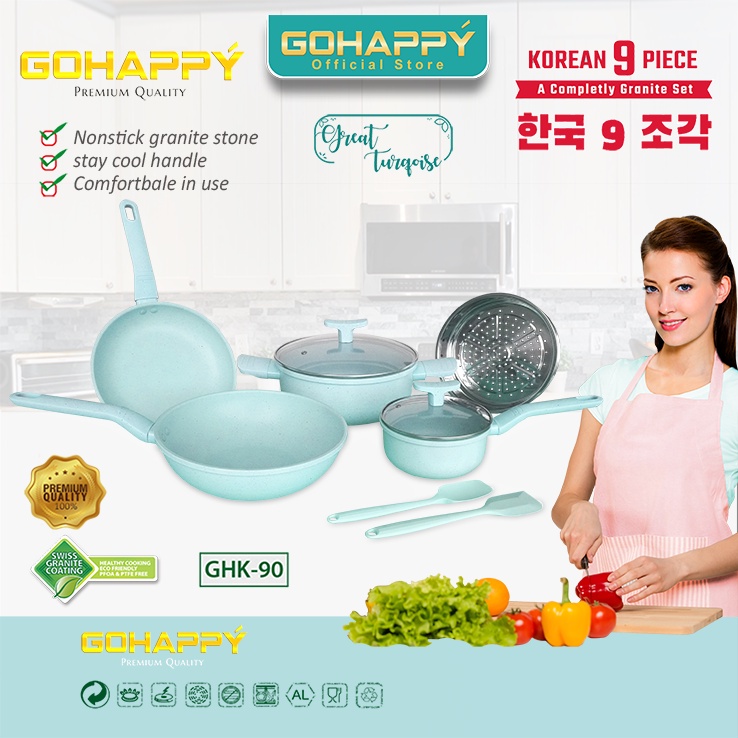 PANCI SET COLOR KOREA POT GRANITE 9 PCS PANCI SET WARNA WARNI CANTIK KOREAN GOHAPPY COOKWARE SET ANTI LENGKET
