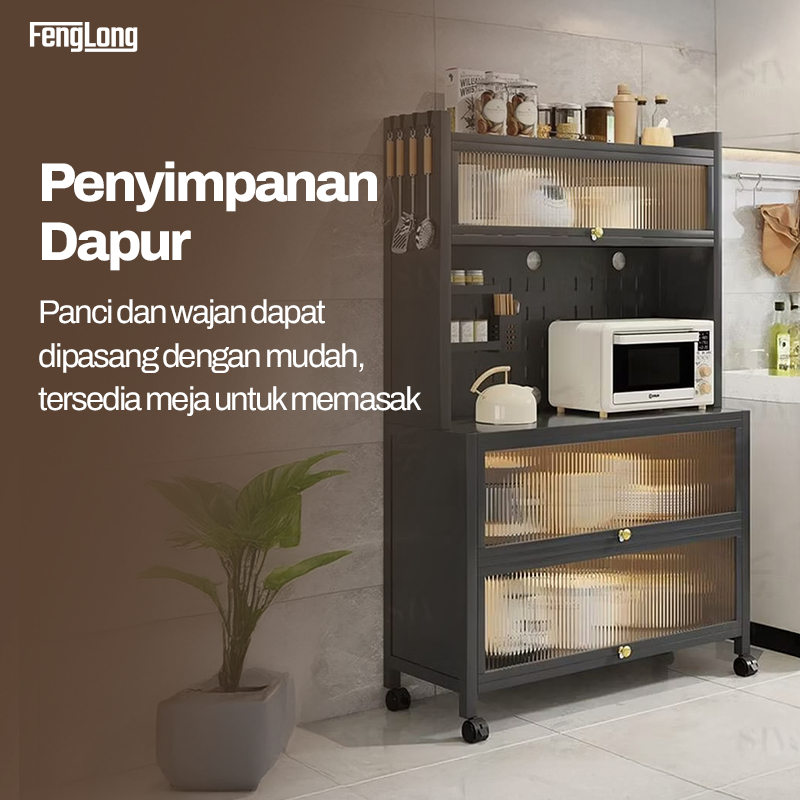 FENG LONG RAK PIRING TERTUTUP LEMARI DAPUR MINIMALIS LEMARI DAPUR SERBAGUNA FULL PLAT BESI