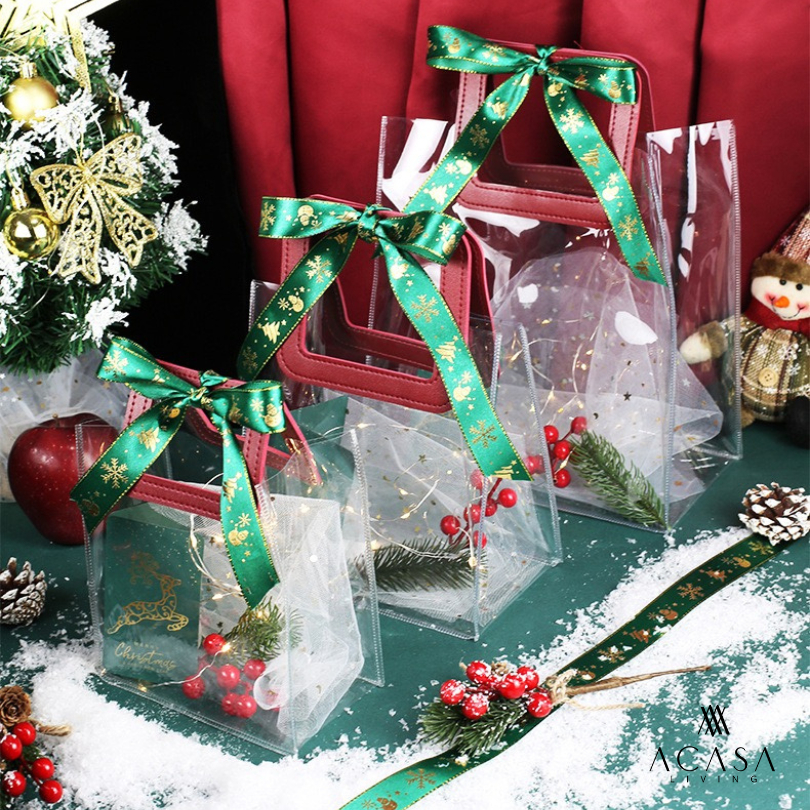 HOLLY - Decorative Christmas Hampers Goodie Bag / Tas Souvenir Natal PVC Mika Gagang Kulit FREE Kartu + Lampu