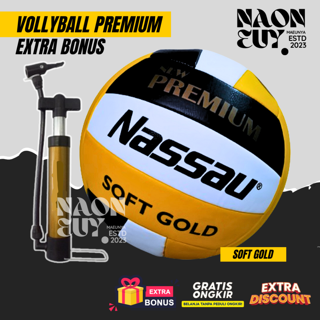 Bola Voli Volly Mikasa MV2200 Super Gold Bola NassauBonus Pompa Angin dan Pentil