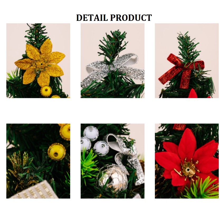 ACC193 Pohon Natal Mini 20cm Cemara PVC Full Aksesoris Bola Pita Bunga Hiasan Meja Dekorasi Ran Merry Christmas