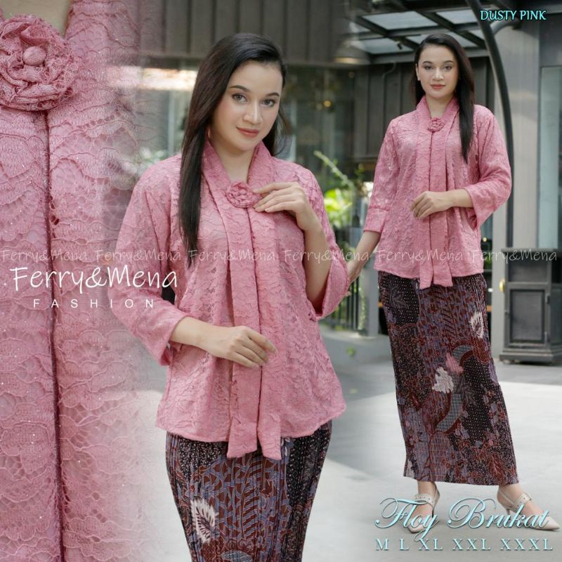 IndahKebaya | SET KEBAYA FLOY BROKAT KUTU BARU JUMBO / KEBAYA BUSUI FRIENDLY MODERN / BAJU WANITA PESTA LD 110 120 130 / MOCCA MAROON SILVER HITAM NAVY HIJAU kuningan mengkilap WARDAH