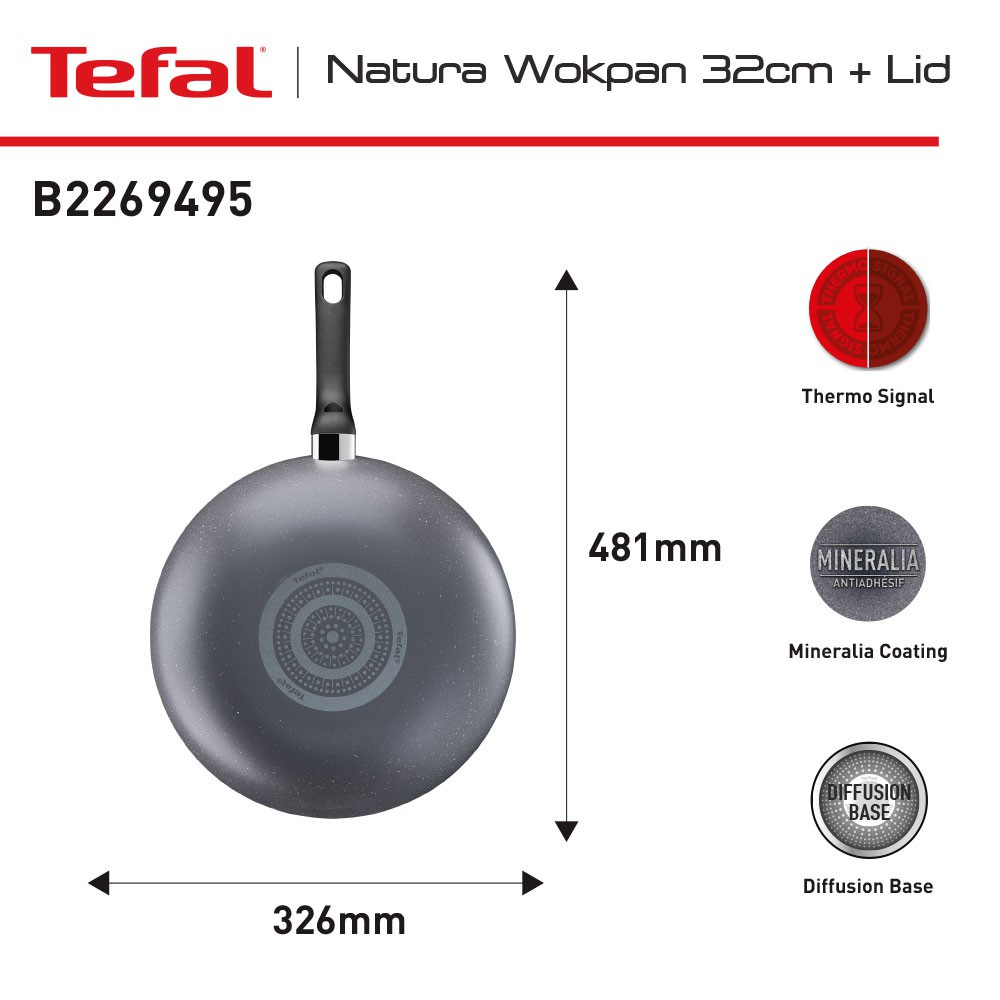 TEFAL WAJAN ANTI LENGKET PENGGORENGAN PAN NATURA WOKPAN 32CM DENGAN TUTUP GARANSI 1 TAHUN