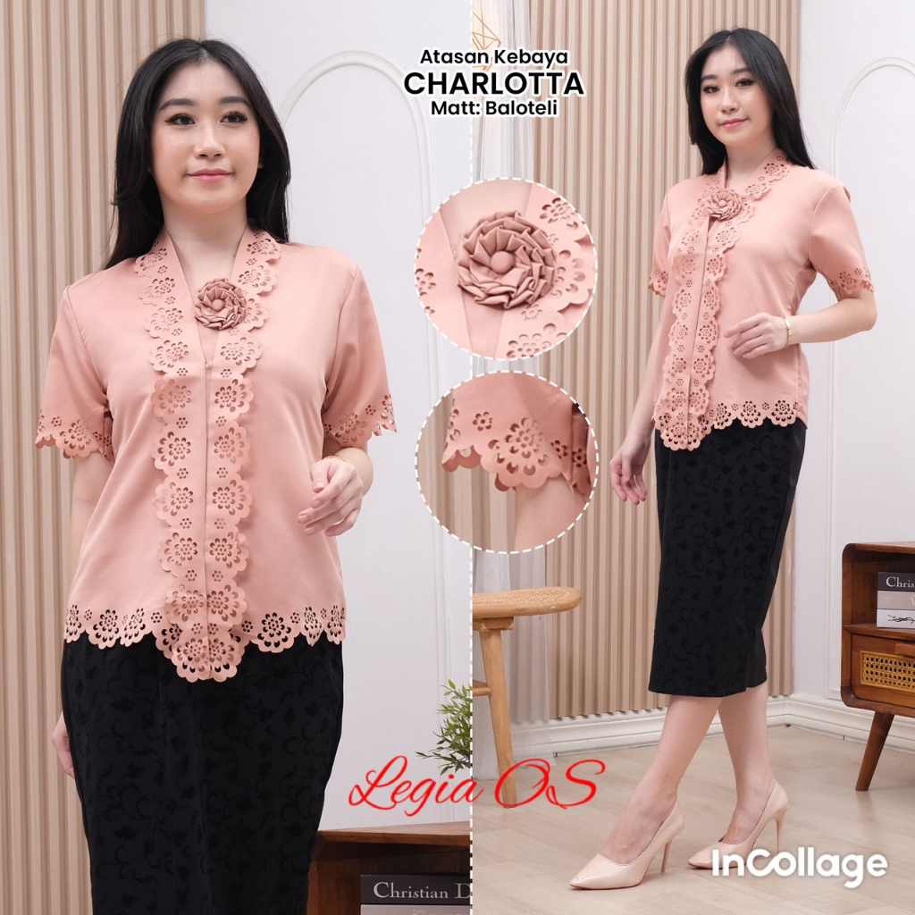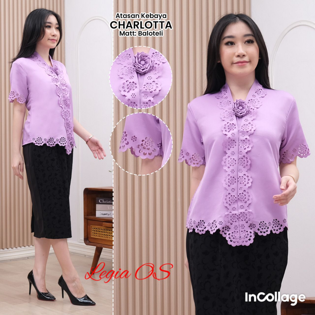 Atasan Kebaya Encim Lengan Pendek Laser Cut Charlotta