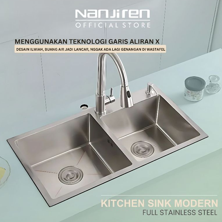NANJIREN KITCHEN SINK STAINLESS STEEL MODERN KITCHEN SINK SUS 304 BAK CUCI PIRING ANTI KARAT KETEBALAN 3.0 MM