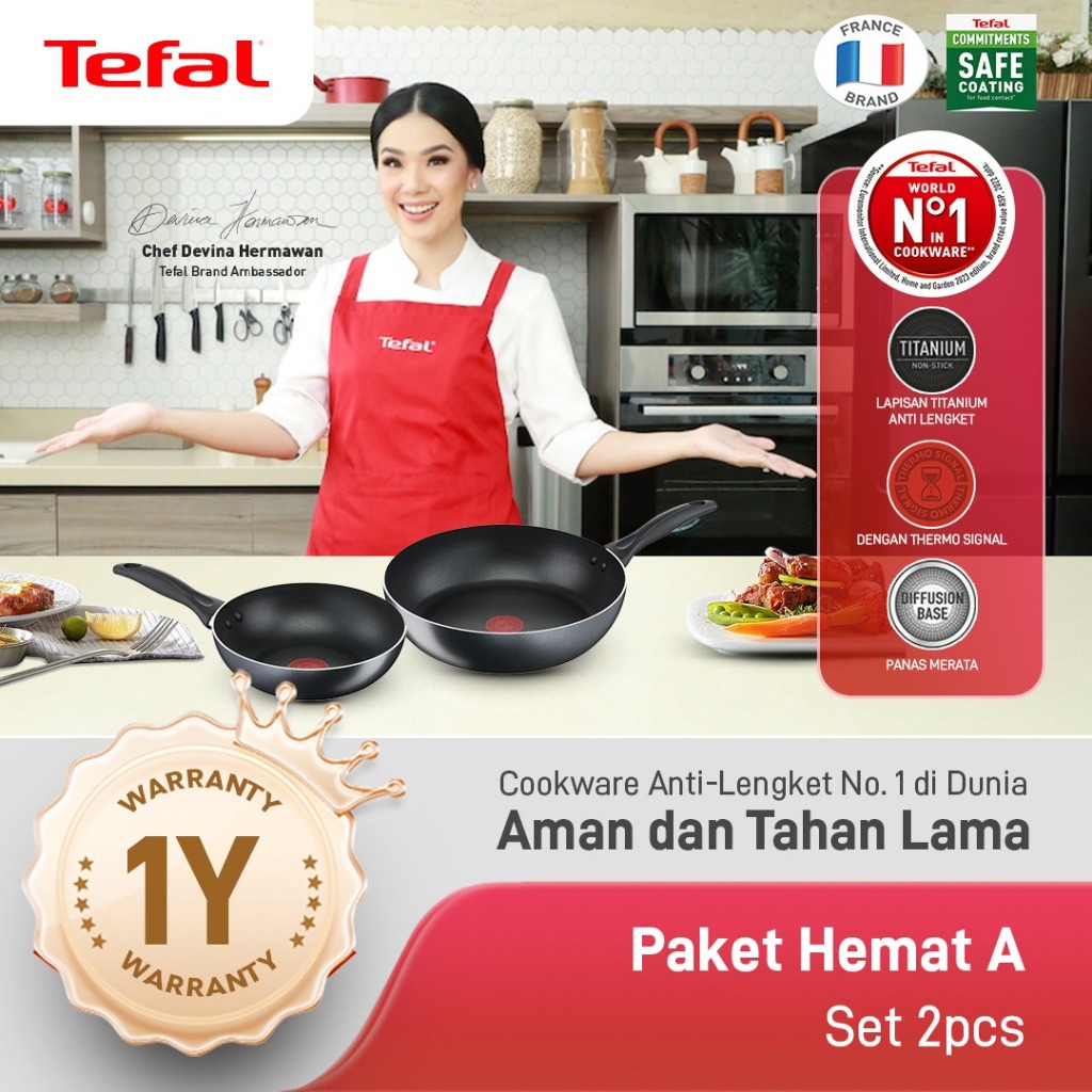 TEFAL WAJAN ANTI LENGKET SET 2 PCS PENGGORENGAN PAN FRYPAN PAKET HEMAT SERIES GARANSI 1 TAHUN 2 WAJAN