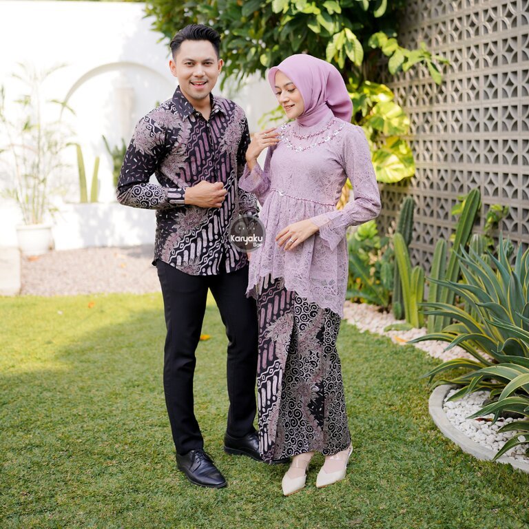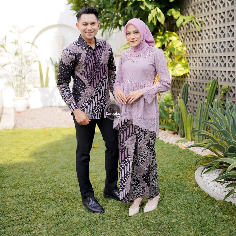 COUPLE SET KEBAYA BATIK SELVIA PREMIUM WARNA MAUVEE SET KEMEJA EKSKLUSIVE LENGAN PANJANG