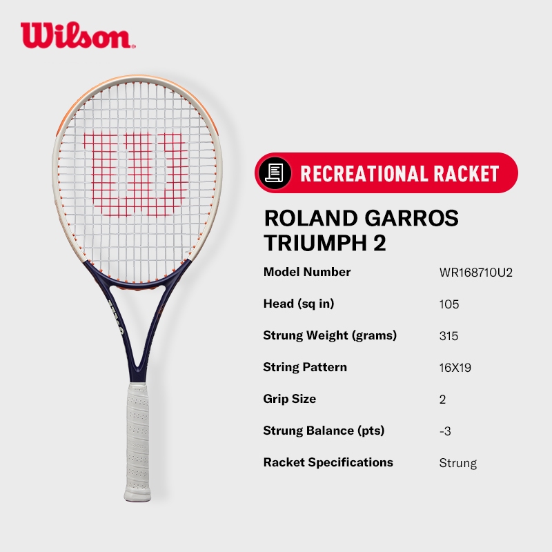 Wilson ROLAND GARROS TRIUMPH 2 Raket Tenis Recreational Tennis Rackets StrungWR168710U