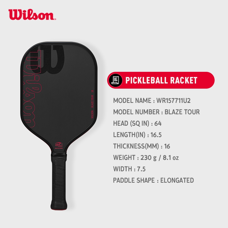 Wilson BLAZE TOUR 16mm Pickleball Paddle Rsckets Grip Size 2 WR157711U