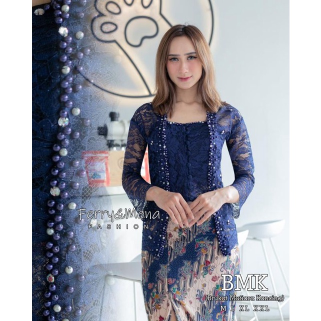 Permata Olshop / Kebaya Kutu Baru Brukat Mutiara Modern / Kebaya Natal / Kebaya Wisuda Non Hijab / Kebaya Modern / Kebaya Kutu Baru Kancing Depan