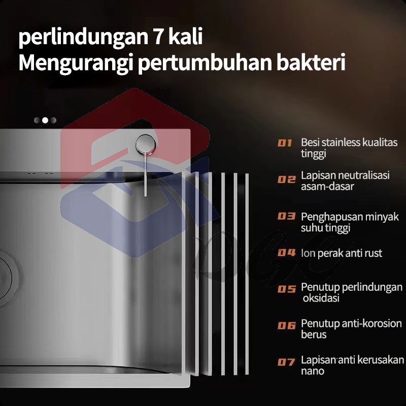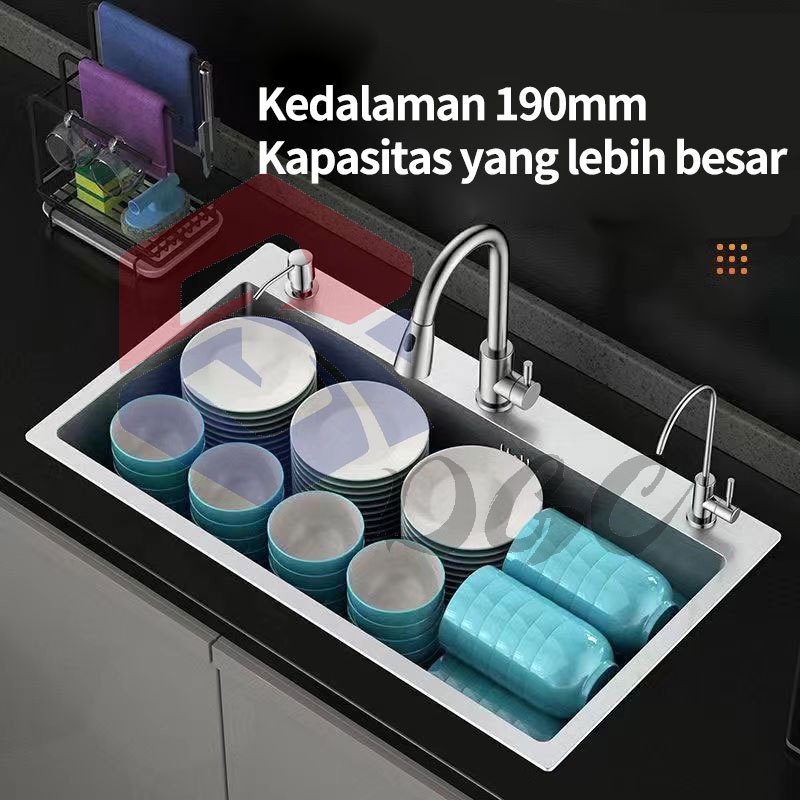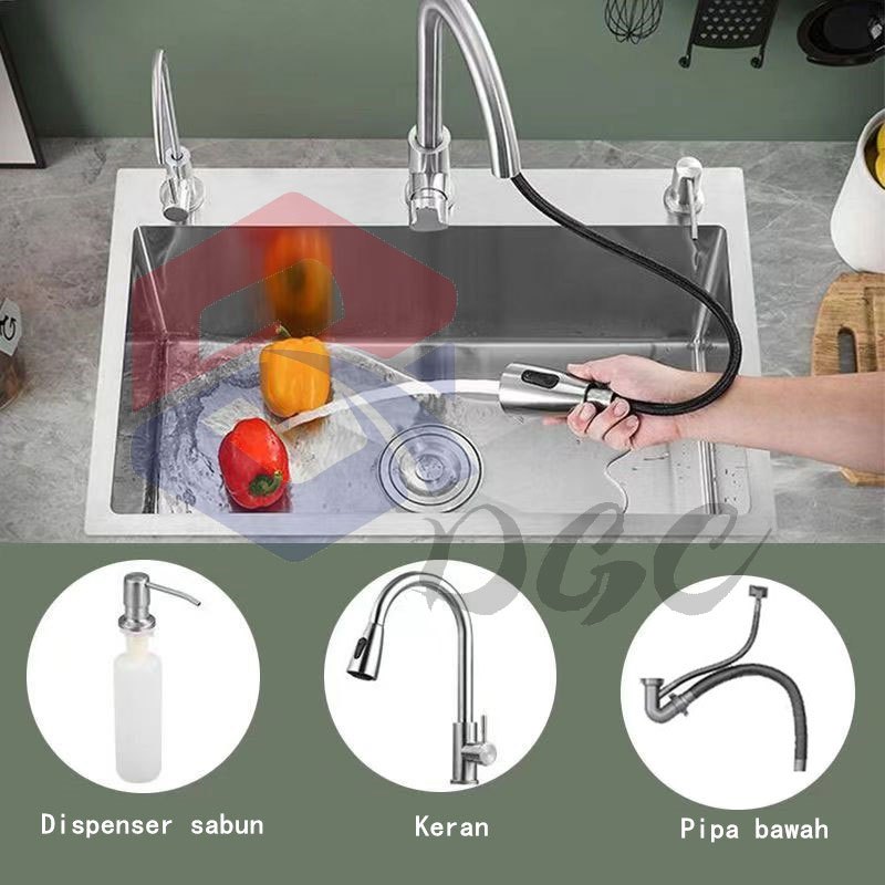DGC SUS304 WASTAFEL CUCI PIRING PAKET KITCHEN SINK BAK CUCI PIRING KITCHEN SINK STAINLESS STEEL PERAK KETEBALAN 3MM