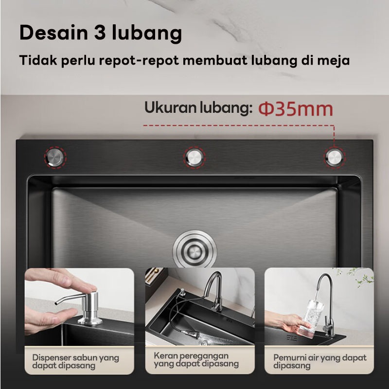 MONQIQI SUS 304 WASTAFEL CUCI PIRING STAINLESS HITAM PERAK SINK CUCI PIRING DENGAN KERAN TARIK KITCHEN SET KUALITAS BAGUS