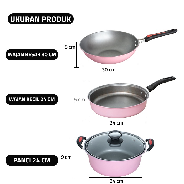 GM BEAR PANCI WAJAN SET 3 PCS 1561 ARRIA PANCI PENGGORENGAN SET PINK