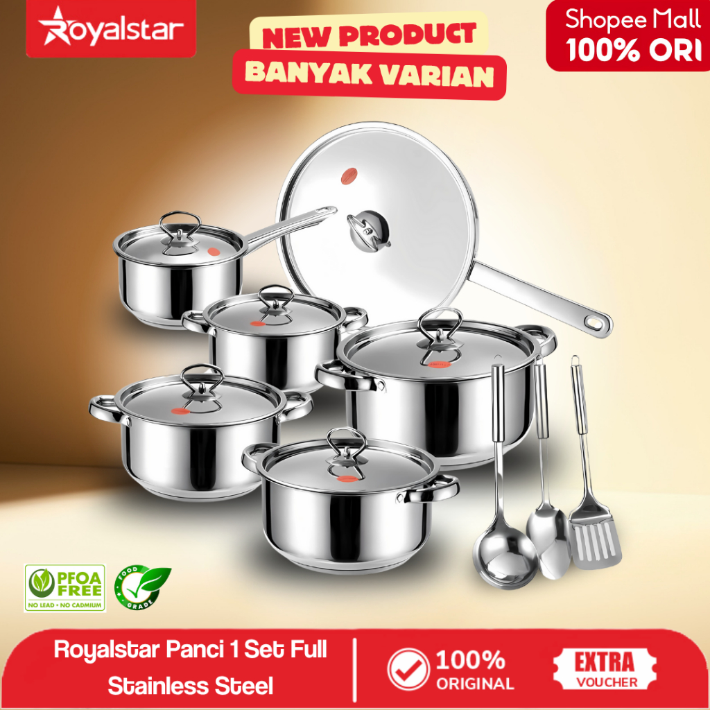 ROYALSTAR PANCI FULL STAINLESS STEEL SET ANTI KARAT TEBAL PERALATAN DAPUR SET LENGKAP SERBAGUNA