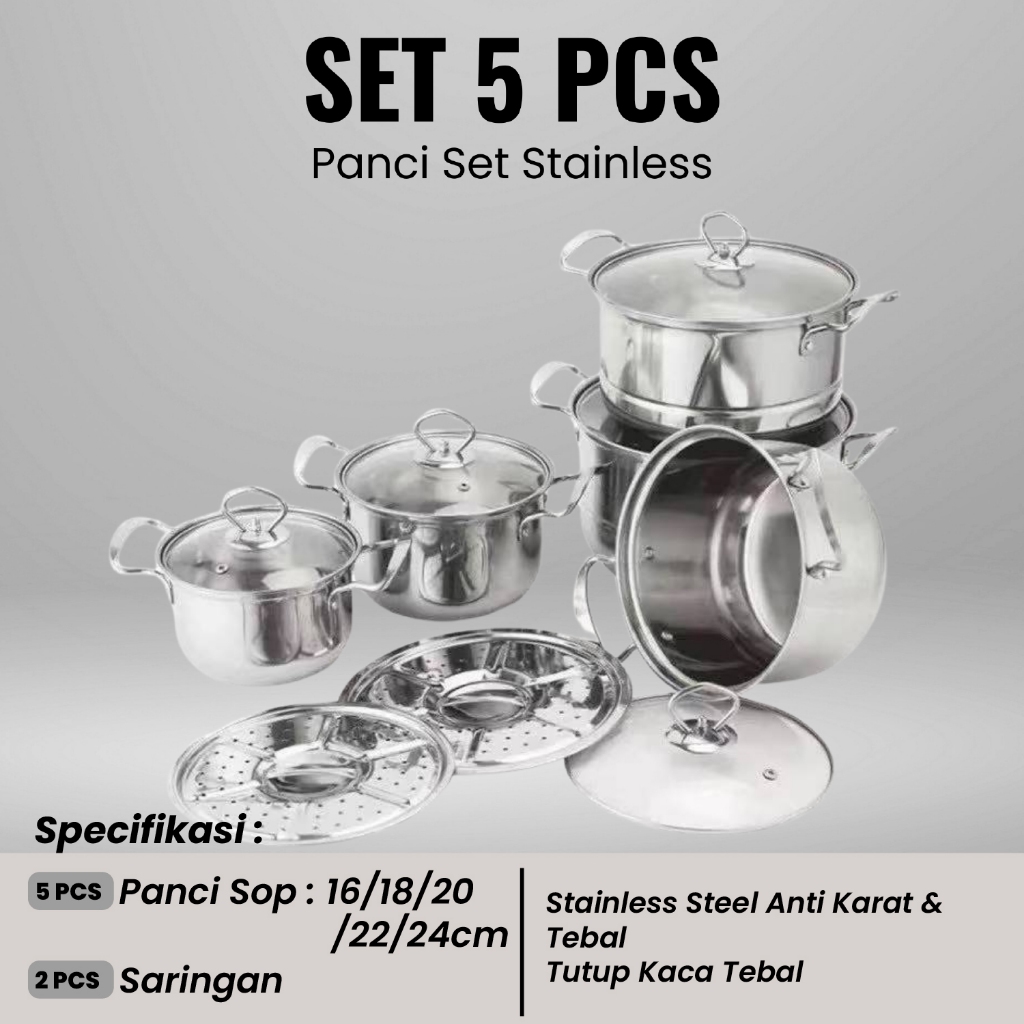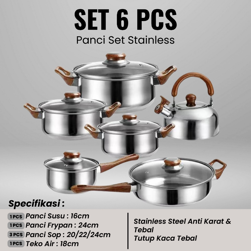 NANJIREN SET MASAK PANCI 6 PCS COOKWARE STAINLESS STEEL ANTI LENGKET FRYPAN PANCI WAJAN PENGGORENGAN