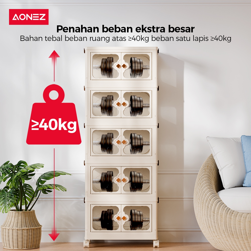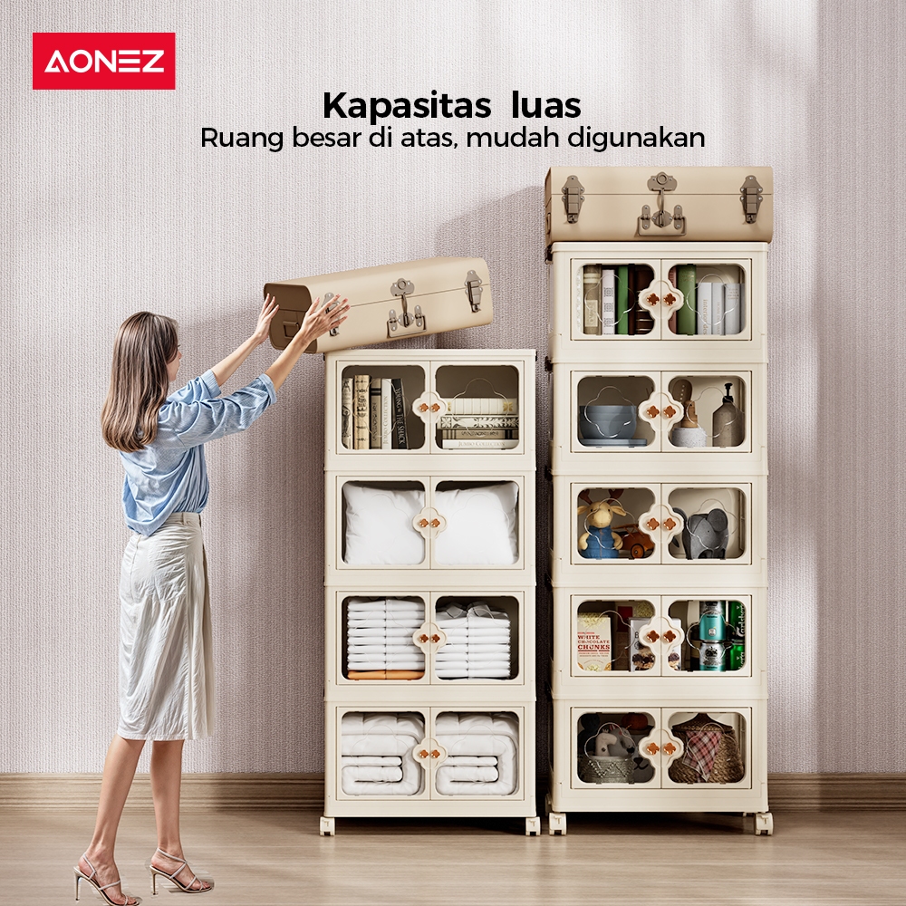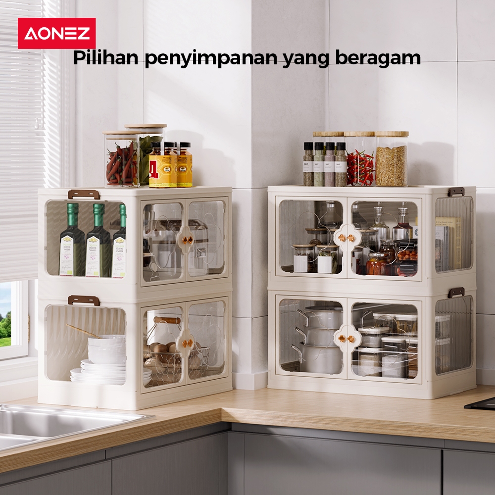 FREE GIFTAONEZ LEMARI PENYIMPANAN LIPAT 4 SUSUN DENGAN PINTU GANDA RAK DAPUR UNTUK POT ALAT MASAK & PERALATAN MAKAN