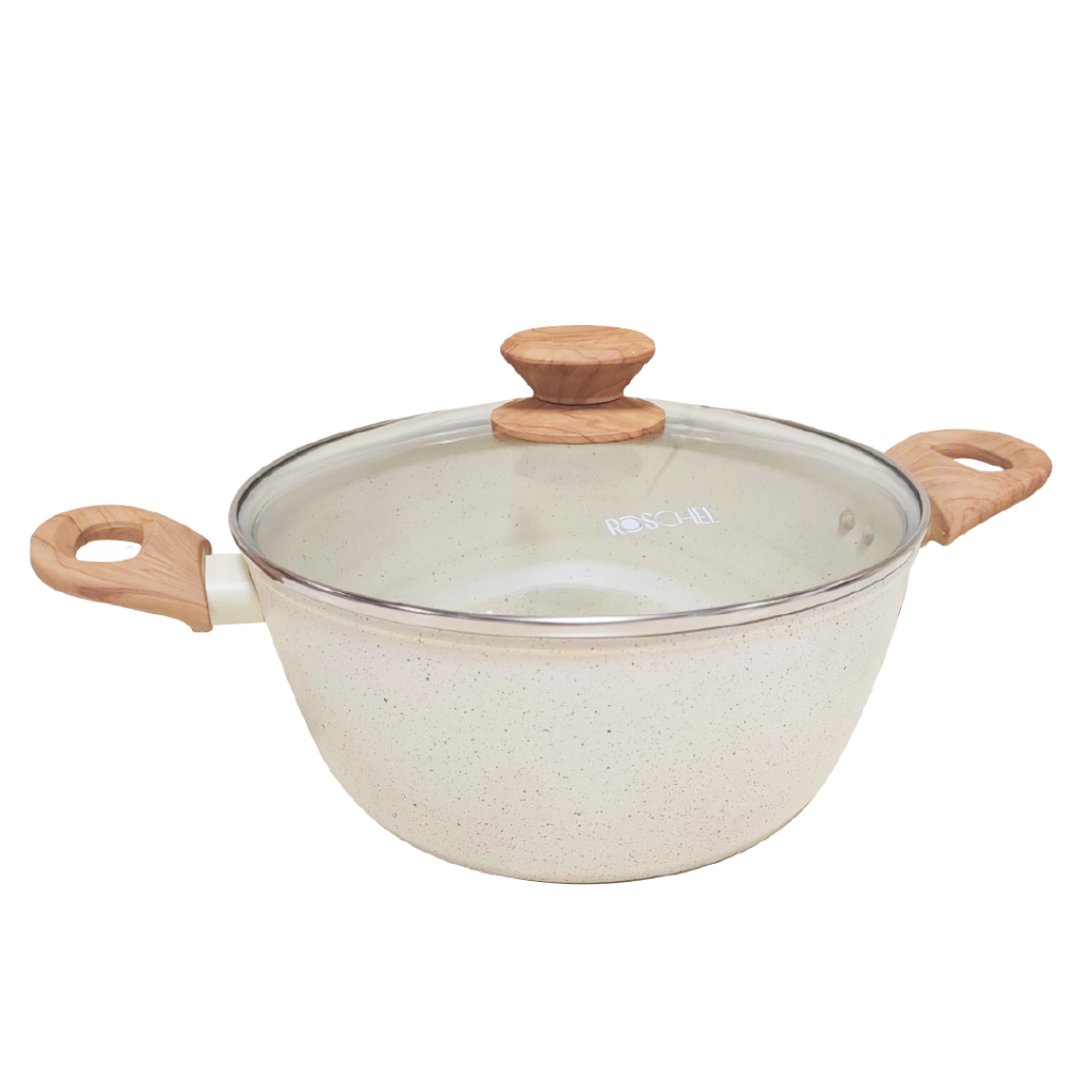 ROSCHEL BENETA WHITE MARBLE COATING NON-STICK CASSEROLE 20 24 28 CM + TUTUP KACA PANCI WAJAN PENGGORENGAN DUTCH